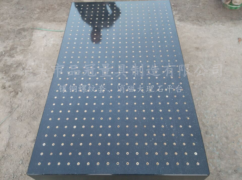 1、大理石鑲螺套平臺精度高,穩(wěn)定性好,不易變形。在常溫下能保證測量精度。